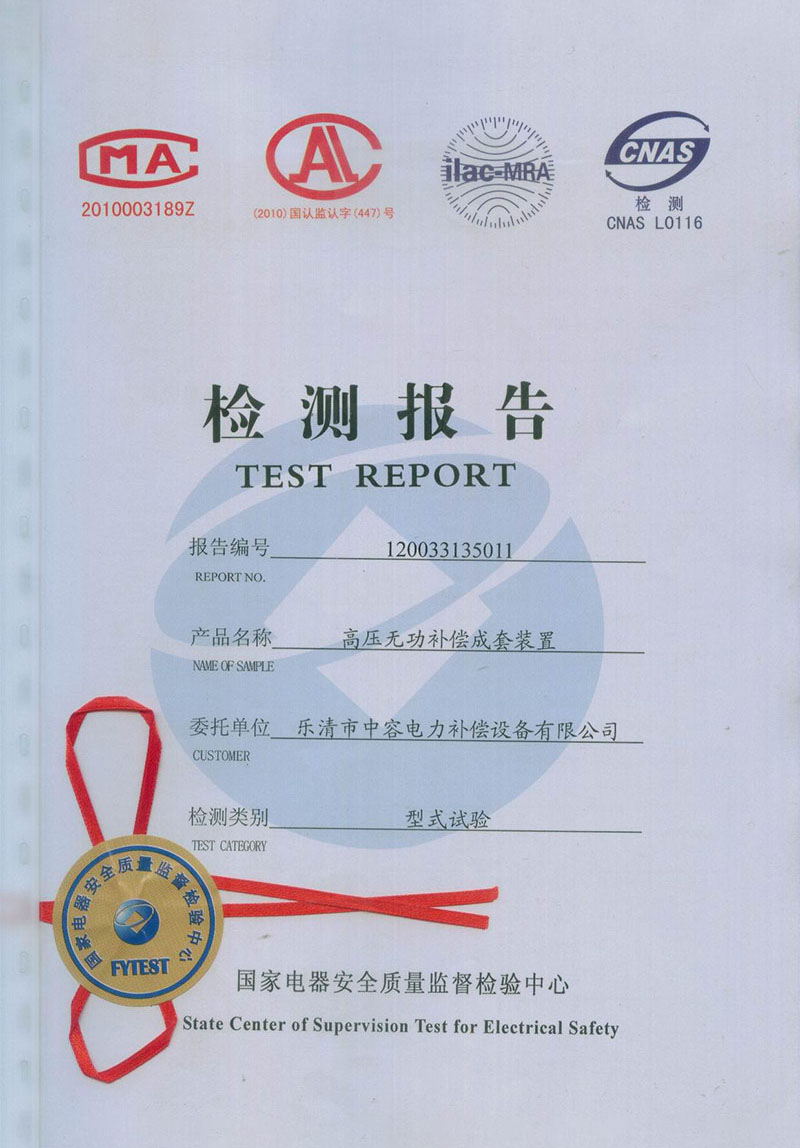 能容電力10KV高壓無(wú)功補(bǔ)償成套裝置試驗(yàn)報(bào)告